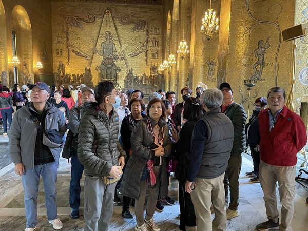 斯德哥爾摩的市政廳讓我們目睹了諾爾貝獎頒獎的禮堂,我們跟模仿賓客緩緩下樓梯的模樣,更是惹得大家開懷大笑. 赫爾辛基是一座古典美與現代文明融爲一體的城市,既 有歐洲古城的浪漫情調,又充滿了國際大都市的韻味,完美的將都市建築與自然風光巧妙結合。